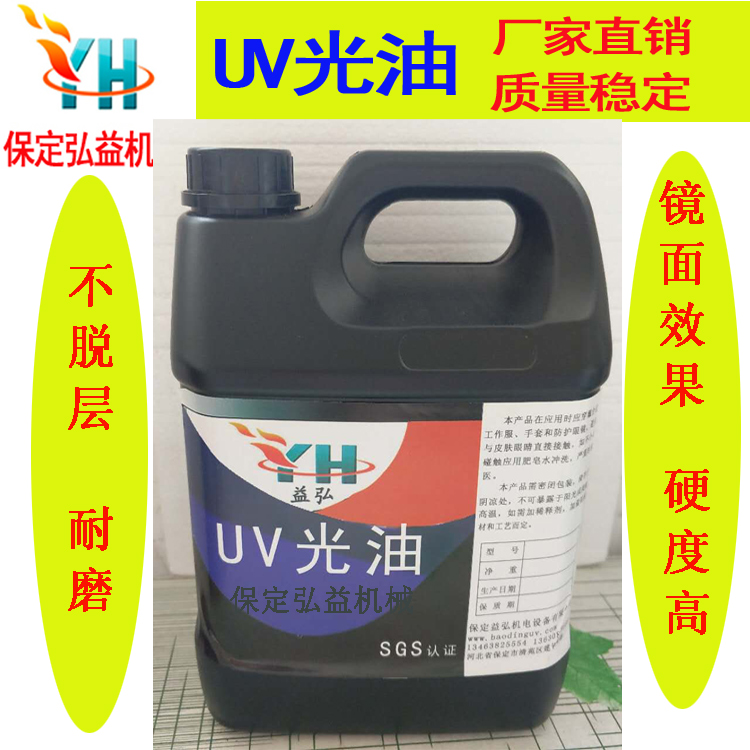 其中UV光油主要由感光樹(shù)脂預(yù)聚體、反應(yīng)型溶劑、光引發(fā)劑和其它助劑組成,其反應(yīng)機(jī)理是預(yù)聚體中的不飽和雙鍵吸收紫外線(xiàn)發(fā)射的能量后,雙鍵在引發(fā)劑的作用下與單體交聯(lián)、發(fā)生聚合反應(yīng),從而固化成膜。由于是立馬固化,UV光油上光速度快、光澤飽滿(mǎn),讓產(chǎn)品顯的更加美觀,由于UV光油立馬干燥,對(duì)環(huán)境污染極小,因此受到了許多行業(yè)的青睞。