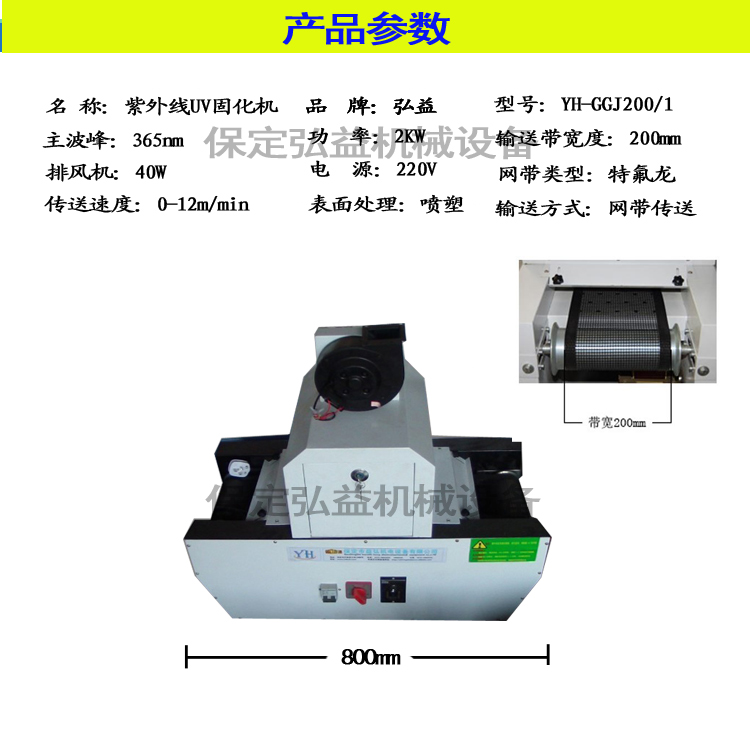 5、 燈管照射寬度:200 mm