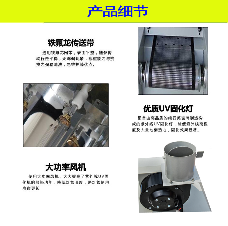 這是一種傳送式UV固化裝置,廣泛用于手機(jī)外殼、薄膜開(kāi)關(guān)、電子塑膠外殼UV表面漆涂裝;用于標(biāo)牌印刷UV油墨的固化;用于在固化電子元件、液晶片、端子膠封、手機(jī)組件粘合、塑膠組件粘合及LCD等;